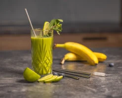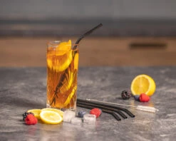 Sareva Herbruikbare Rietjes – Met Borstel – Zwart – Gebogen – 4 Stuks