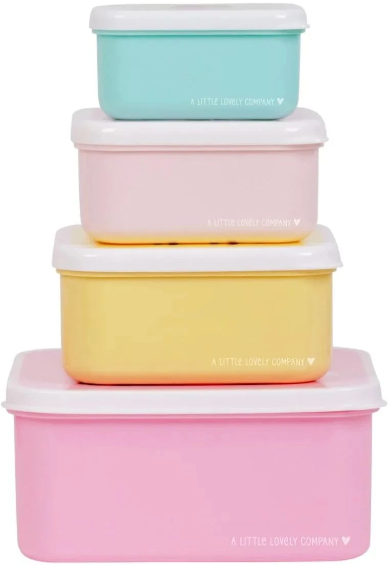 Set van vier lunch- en snackdozen in verschillende maten in bijpassende designs. Geweldig voor school, onderweg en ideaal om thuis snacks te bewaren. Door het lipje aan de zijkant van het deksel zijn ze gemakkelijk te openen en te sluiten en de doosjes stapelen in elkaar om ze gemakkelijk op te bergen. Let op: de lunch & snack box set is niet geschikt voor de vaatwasser of magnetron. Was alle bakjes in een warm sopje voor het eerste gebruik. Specificaties * Inhoud: 4 bakjes * Afmetingen: lunch box 15,8 x 14 x 7 cm grote snack box 12 x 12 x 5,5 cm middelgrote snack box 10,5 x 10,5 x 5 cm kleine snack box 9 x 9 x 4,5 cm * Materiaal: PP * Niet geschikt voor de vaatwasser of magnetron