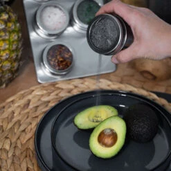 Ben jij op zoek naar een kruidenrek voor alle losse kruidenpotjes in jouw keukenkastjes? Dan is de Blackwell Kruidenpotjes Magnetisch 6 potjes waar jij naar op zoek bent! Met deze potjes heb jij namelijk alle kruiden overzichtelijk bij elkaar. Dankzij het kunststoffen dekseltje kan jij snel zien welke kruiden je moet hebben. Let op! Vergeet niet het beschermplasticje van de glazen af te halen. Ook zijn de potjes magnetisch, hierdoor blijven ze dus aan de standaard vast zitten. De potjes van de Blackwell Kruidenpotjes Magnetisch 6 potjes zijn voorzien van 2 verschillende openingen op de kruiden uit te strooien, voor precies de gewenste hoeveelheid!