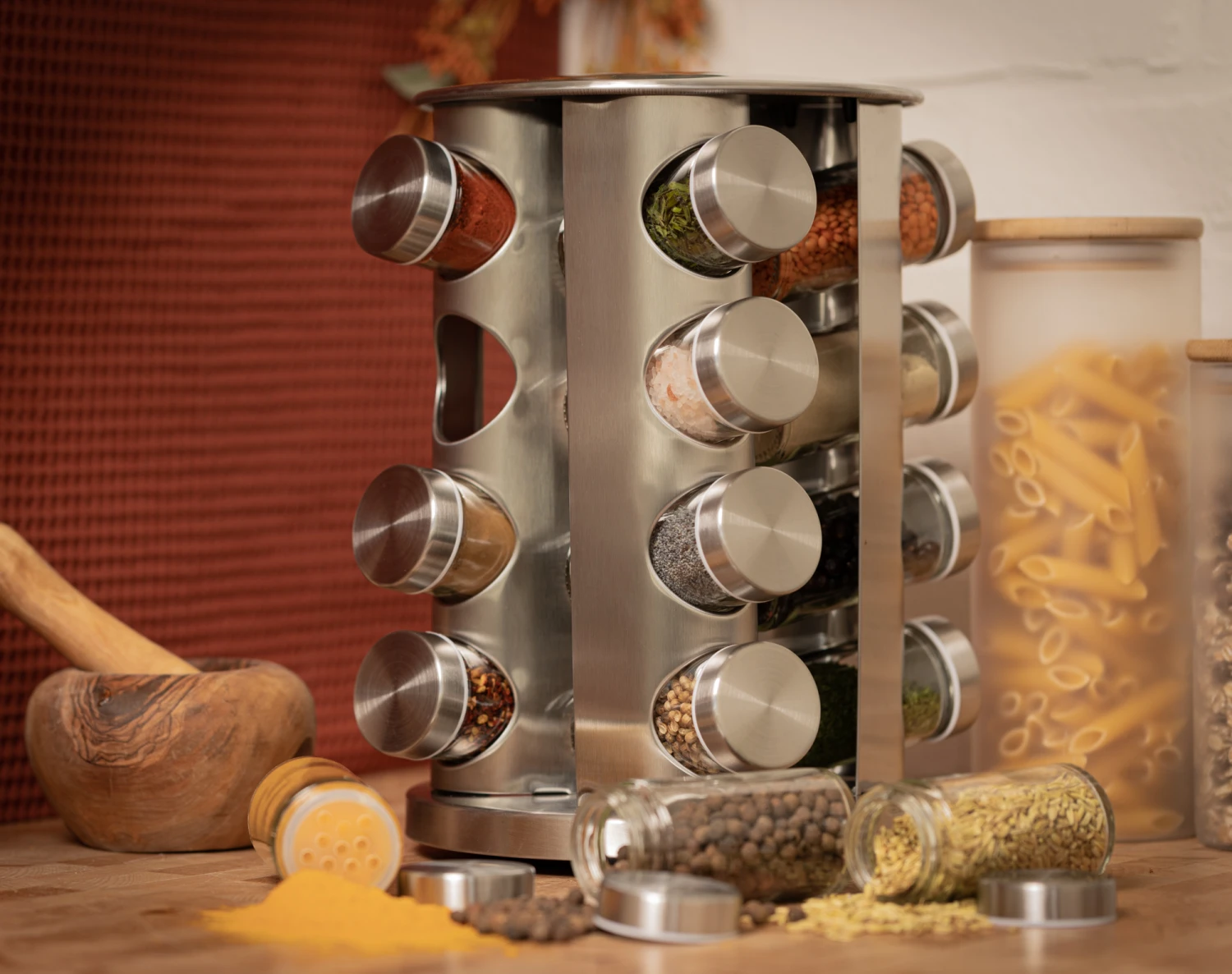Wil je meer ruimte in de keuken creëren en de keuken organiseren? Dan is de Blackwell Kruidenrek RVS 16-Delig ideaal voor jou. Gebruik dit kruidenrek om eenvoudig je specerijen en kruiden in op te bergen, dit ziet er niet alleen stijlvol uit in jouw keuken, maar is ook ruimte besparend. Het Blackwell Kruidenrek RVS 16-Delig biedt ruimte voor 16 verschillende kruiden. Je kan alle kruiden en specerijen gemakkelijk pakken doordat het kruidenrek draaibaar is.