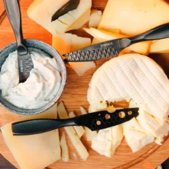 De Kaasmessenset Mini Monaco+ Zwart is uniek, stijlvol en geschikt voor elk type kaas. Serveer je een kaasplankje, dan hoort deze complete messenset daar absoluut bij! Extra handig: door de zwarte coating en het wafelpatroon zijn deze scherpe, roestvrijstalen messen non-stick.