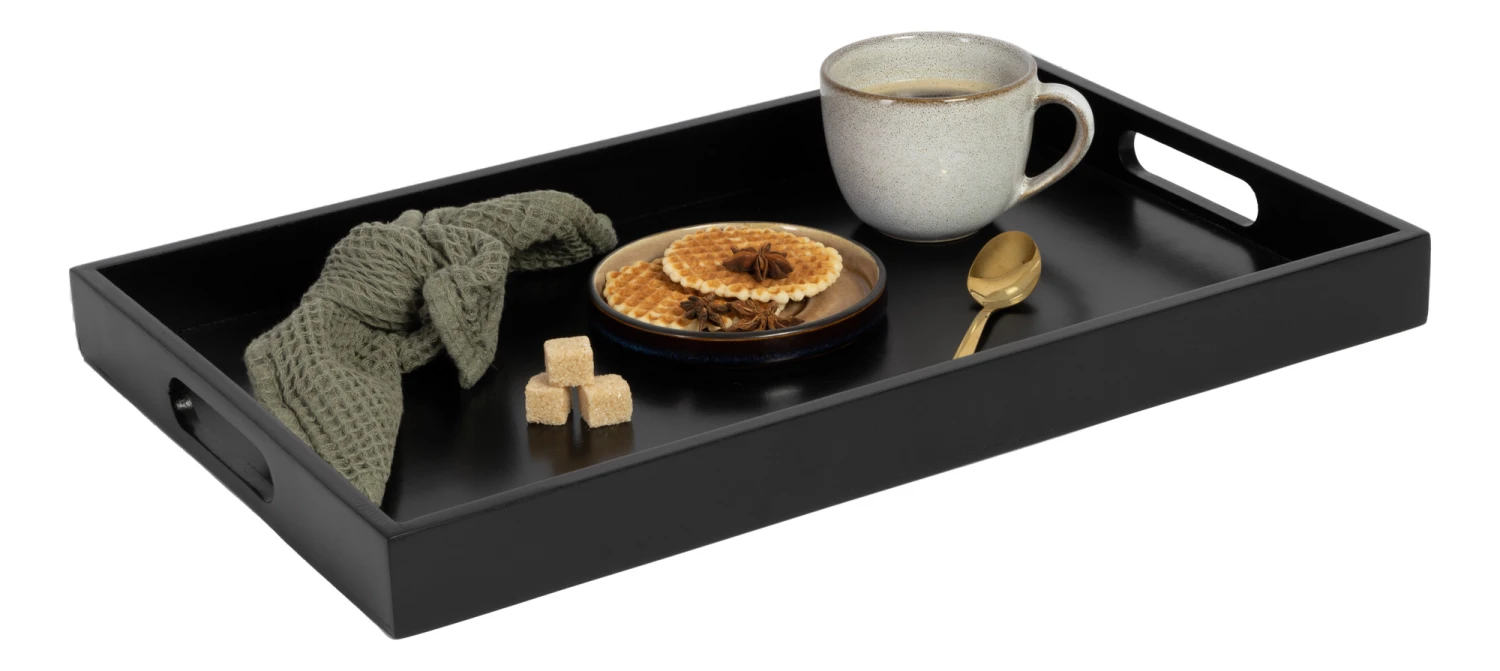 Met het Jay Hill dienblad serveer je eenvoudig hapjes en drankjes of een ontbijtje op bed. Het dienblad heeft een afmeting van 46 x 29 cm. Het dienblad is gemakkelijk te tillen door de opstaande randen met opening. Het dienblad is ook te gebruiken als decoratie, om bijvoorbeeld een aantal kaarsen op te zetten.