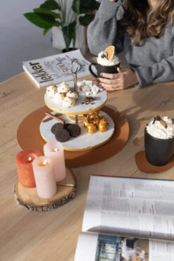 Binnenkort een high tea op de planning? Dan mag deze Jay Hill Etagere niet ontbreken op jouw tafel! De etagère is gemaakt van marmer en het onderste bord heeft een diameter van 25 cm en de bovenste van 20 cm. Ook is de etagère voorzien van anti-slip voetjes, zodat hij niet verschuift. Na het gebruiken van de [manudacturer] Etagere kan deze eenvoudig worden gereinigd met de hand.