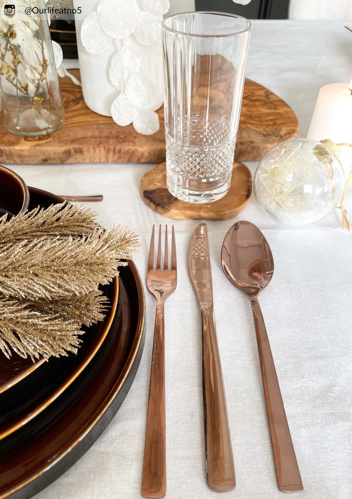 Wil jij je tafelgasten voorzien van een perfect gedekte tafel? Een goede maaltijd verdient niet alleen aandacht in de keuken. Met deze 24-Delig Cookinglife Bestekset Koper krijgt zelfs een simpele pasta pesto een chique uitstraling. Van voorgerecht tot dessert: de Cookinglife bestekset is geschikt voor 6 personen en bestaat uit: