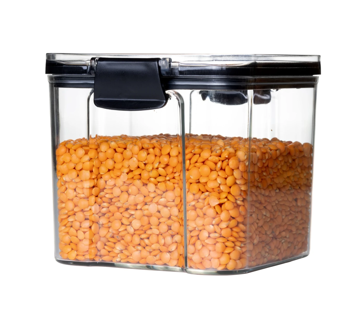 Met deze set voorraadpotten van Cookinglife berg je eenvoudig je etenswaren op, zodat deze vers en opgeruimd zijn. De voorraadpotten zijn transparant met transparante deksel, waardoor je zicht hebt op de inhoud en hoeveelheid, ook in de keukenla! Na gebruik kunnen de potten makkelijk gereinigd worden met de hand en ze zijn ook nog eens stapelbaar. De set bestaat uit 8 verschillende voorraadpotten met deze afmetingen: