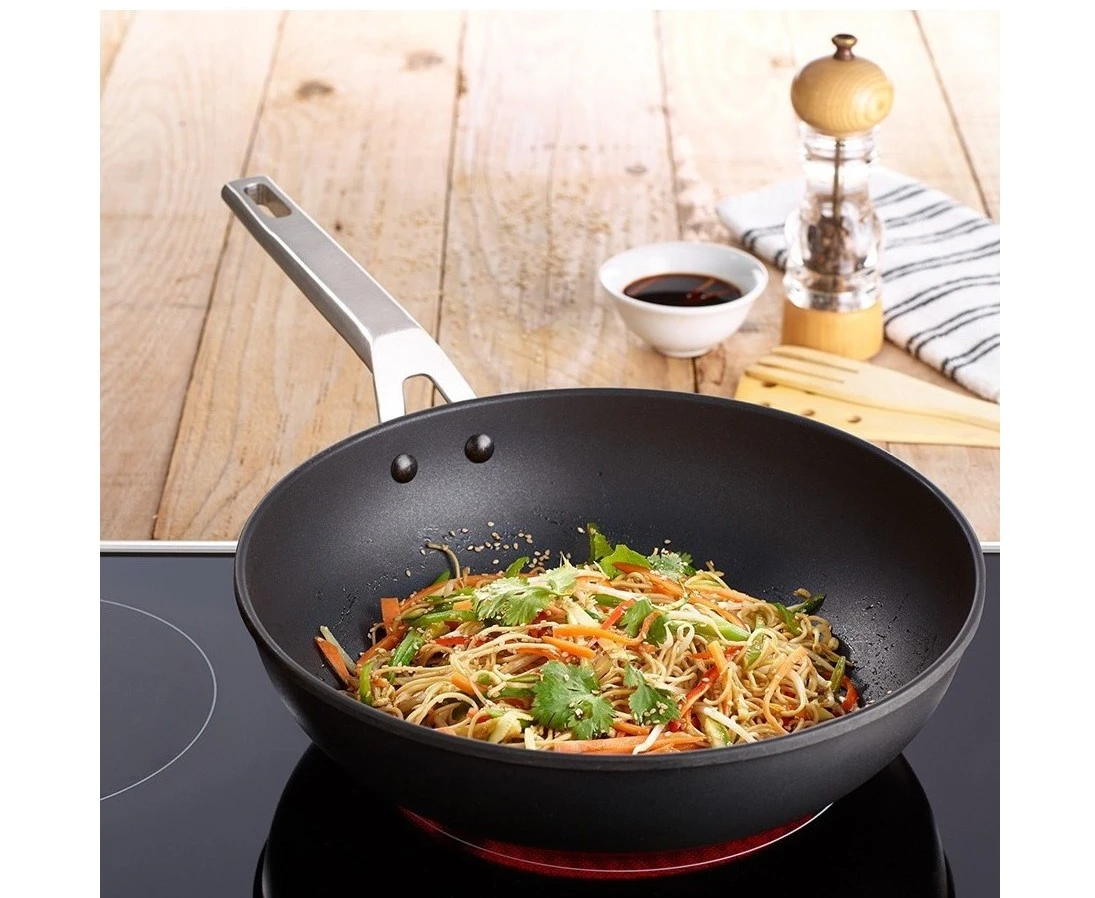 Deze wokpan van het Spaanse merk Valira is geschikt voor alle warmtebronnen, dus ook voor inductie! De pan is voorzien van een PFOA-vrije keramische anti-aanbaklaag, hierdoor is de pan warmtebestendig tot wel 350 °C. De pan is gemaakt van duurzaam aluminium, dit maakt de pan erg licht en makkelijk te verplaatsen. De wokpan heeft een diameter van 30 centimeter en beschikt over een handvat van roestvrijstaal die niet warm zal worden tijdens het koken. Voor lang en duurzaam gebruik is het aan te raden de pan met de hand schoon te maken in plaats van in de vaatwasser, hierdoor zal je er langer plezier van hebben!