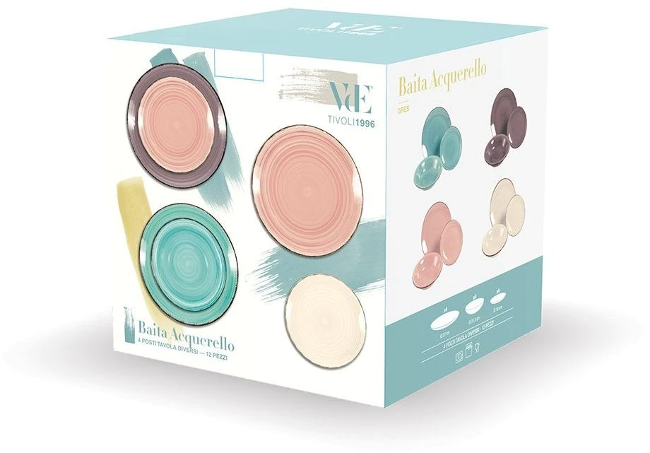 Met de Villa d’Este Serviesset Acquerello – 12-delig / 4 personen wordt het eten een feest! Deze serviesset bestaat namelijk uit Diverse kleuren, waardoor jij een vrolijke tafel dekt! Het servies is gemaakt van Aardewerk en is geschikt voor 4 personen. Daarnaast is het ook nog met de hand geschilderd, waardoor elk stuk uniek is! Na het gebruiken van de Villa d’Este Serviesset Acquerello – 12-delig / 4 personen kunnen deze eenvoudig worden gereinigd in de vaatwasser. De serviesset bestaat uit: