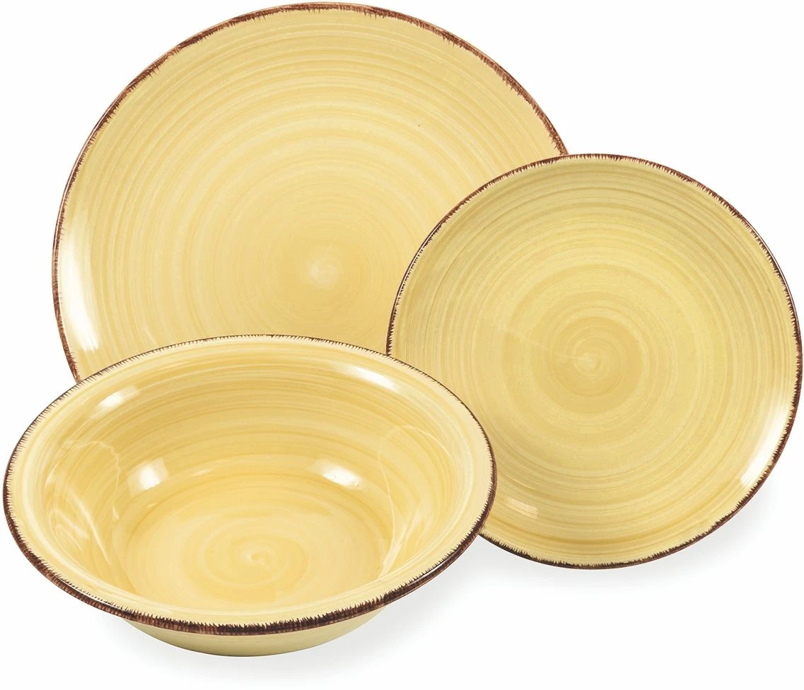 Met de Villa d’Este Serviesset Acquerello – 18-delig / 6 personen wordt het eten een feest! Deze serviesset bestaat namelijk uit Diverse kleuren, waardoor jij een vrolijke tafel dekt! Het servies is gemaakt van Aardewerk en is geschikt voor 6 personen. Daarnaast is het ook nog met de hand geschilderd, waardoor elk stuk uniek is! Na het gebruiken van de Villa d’Este Serviesset Acquerello – 18-delig / 6 personen kunnen deze eenvoudig worden gereinigd in de vaatwasser. De serviesset bestaat uit: